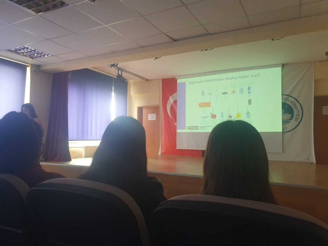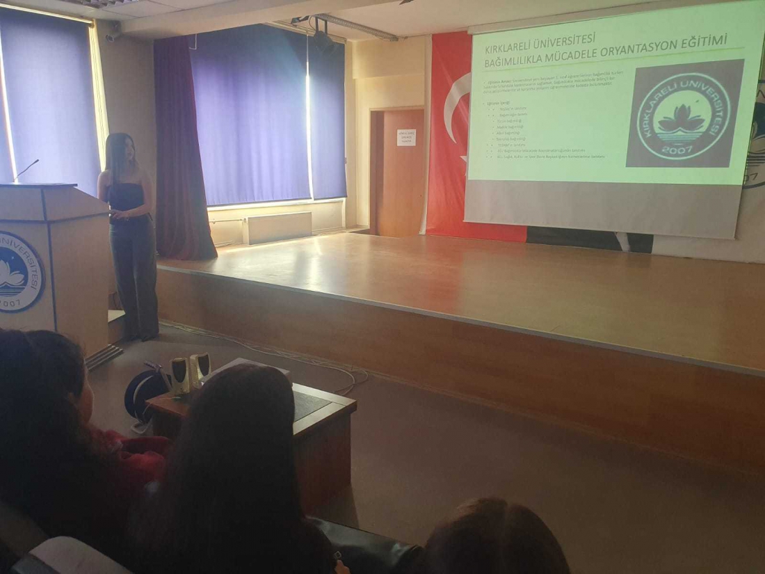 Eğitim programı kapsamında, bağımlılıkla mücadele konusunda farkındalık oluşturmak ve öğrencilerimizin bilinçli davranış geliştirmelerini teşvik etmek hedeflenmiştir. Ayrıca, fakültemiz öğrencilerinden Zeynep Kaymaz tarafından arkadaşlarına yönelik akran bilgilendirme sunumu yapılmıştır.